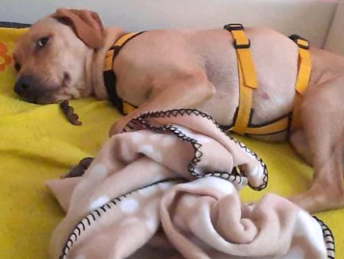 Willow wurde mit ihren Welpen von Elena in Tula gefunden. Eines Tages bemerkte Elena, dass etwas mit Willow nicht stimmte. Die junge Mama konnte ihre Hinterbeine nicht mehr bewegen und war wie gelähmt. In der Klinik wurde eine Vorwölbung der Bandscheiben festgestellt. Nach einer längeren Akupunktur-Therapie kann Willow jetzt wieder laufen.