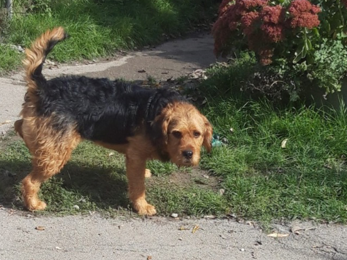Einsam, in der Nähe eines Fabrikgeländes, wurde Bonny in Russland aufgefunden. Wir gehen davon aus, dass sie ausgesetzt oder als ehemalige Vermehrerhündin ausgemustert wurde.