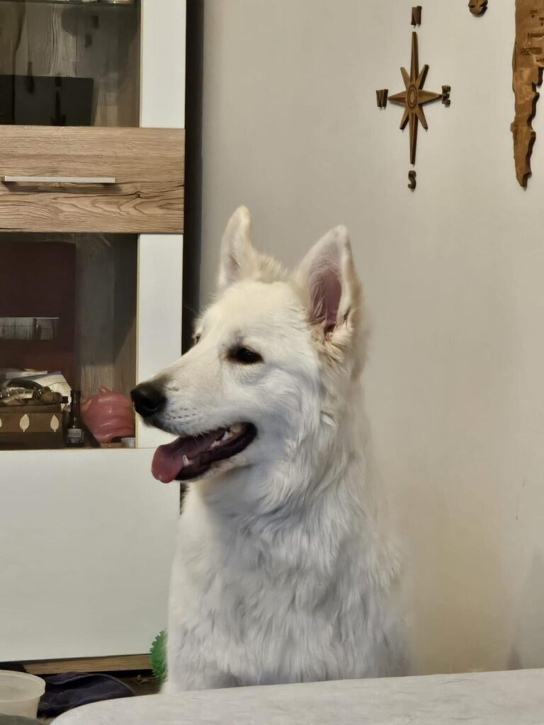 Wie unschwer zu erkennen ist, steckt in Esta größtenteils (evtl. auch 100%) weiße Schäferhündin. Sie zeigt sich als freundliche und menschenbezogene Hündin, die den Kontakt zu ihren Bezugspersonen genießt. Sie freut sich über gemeinsame Zeit und Aufmerksamkeit. Auch mit anderen Hunden kommt sie gut zurecht und zeigt sich im Alltag verträglich.