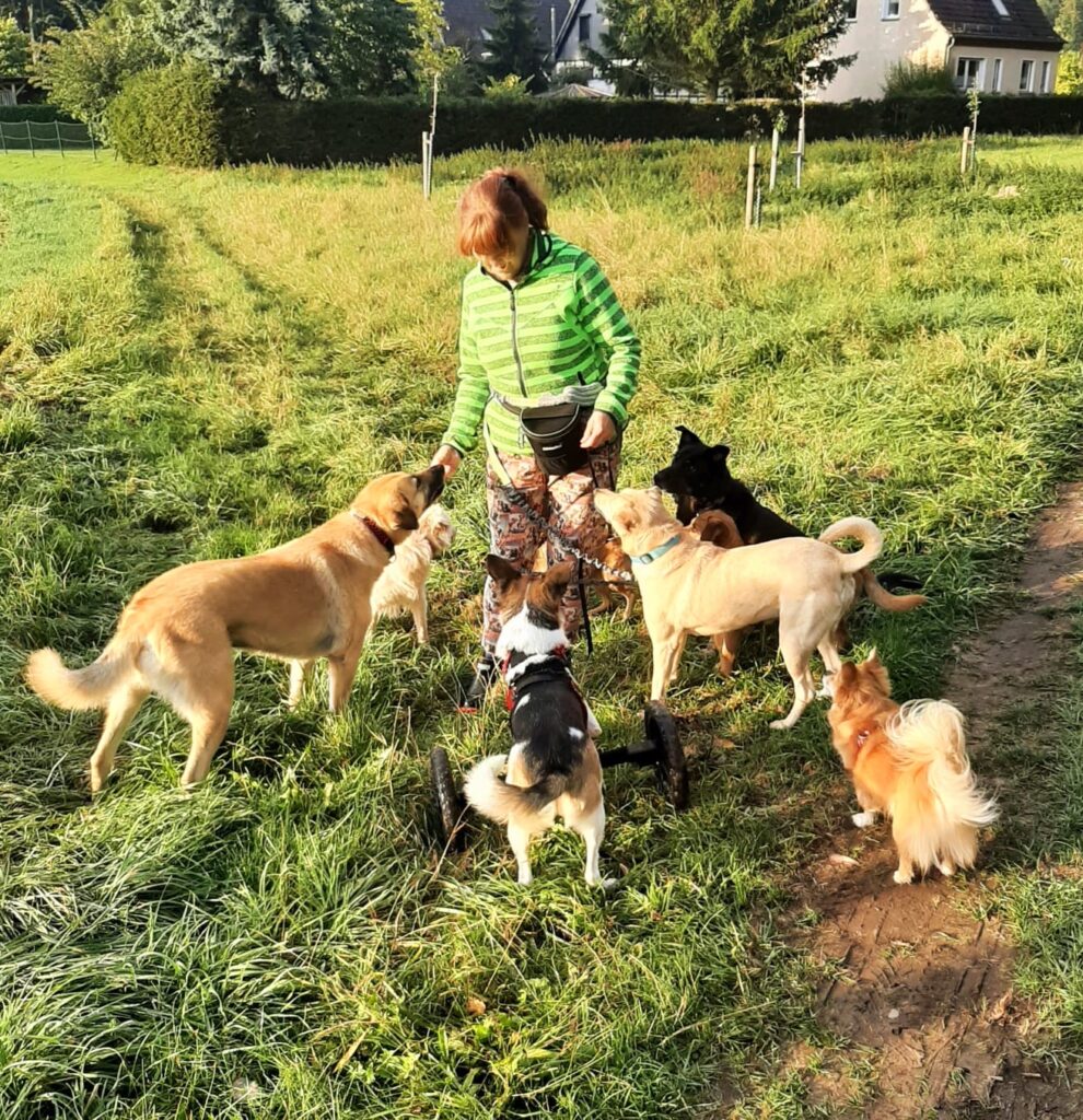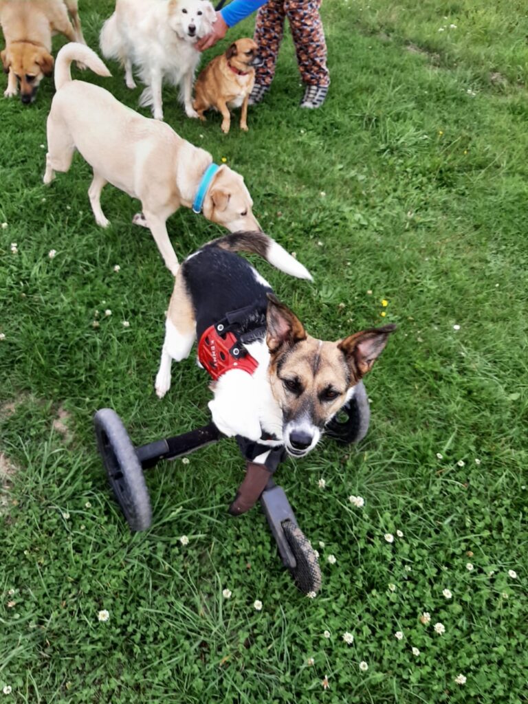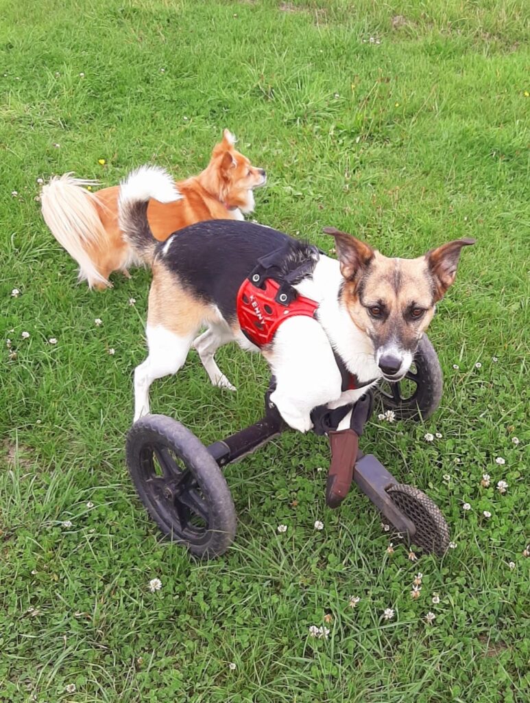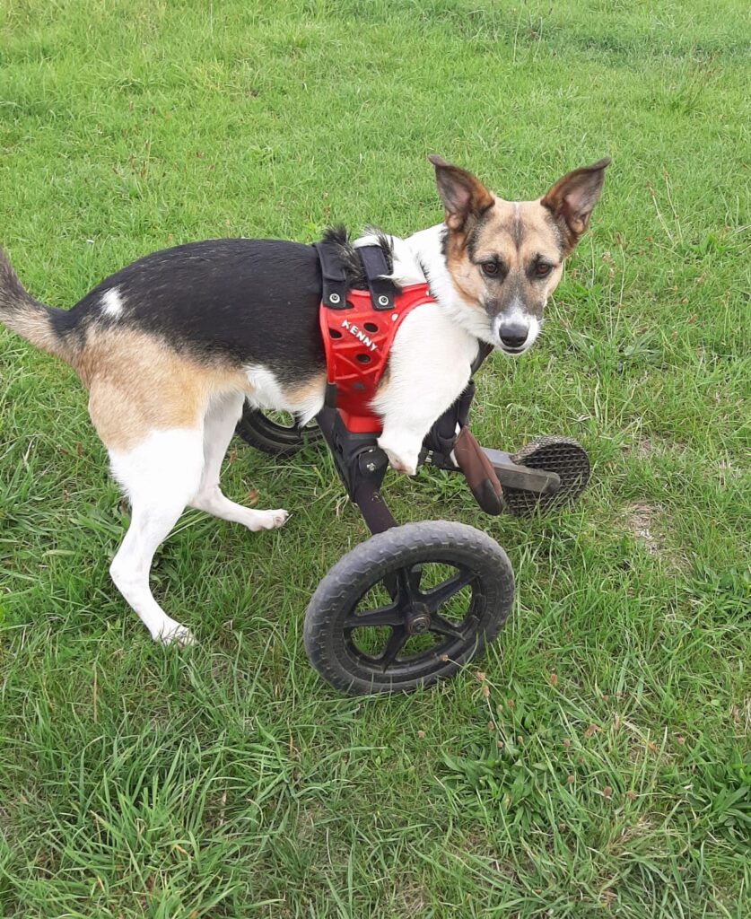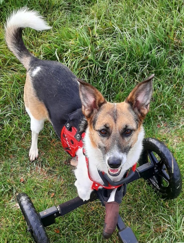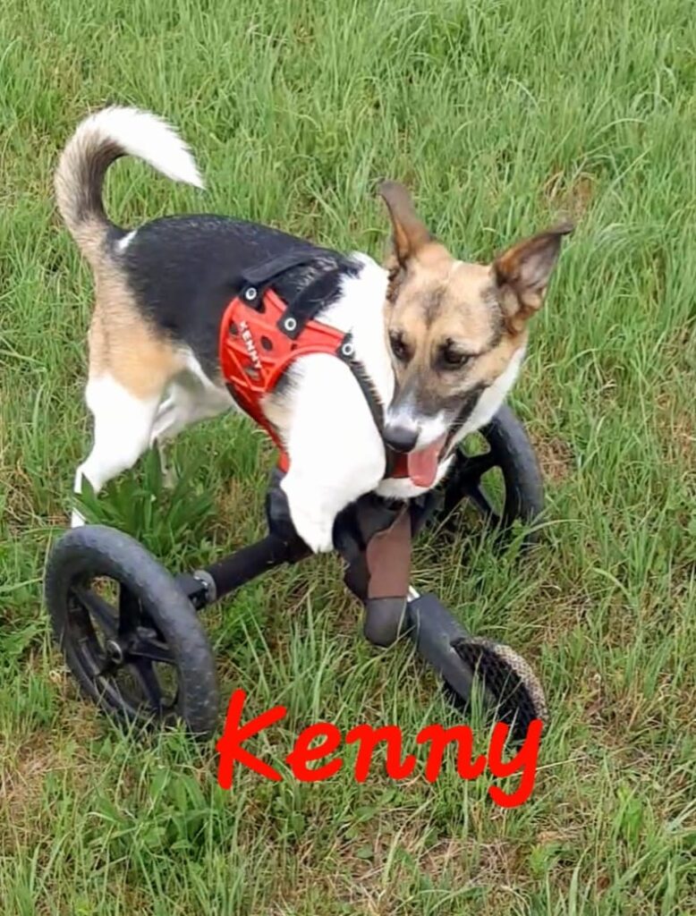 Seit nunmehr acht Monaten lebt Kenny auf einer liebevollen Pflegestelle in 06577 Oldisleben, wo sie sich großartig entwickelt hat. Im Haus bewegt sie sich ganz ohne Rolli und kommt damit erstaunlich gut zurecht. Draußen nutzt sie ihren angepassten Rollstuhl, mit dem sie sicher und fröhlich unterwegs ist. Spaziergänge mit anderen Hunden oder Menschen meistert sie souverän – offen, freundlich und unbeschwert.