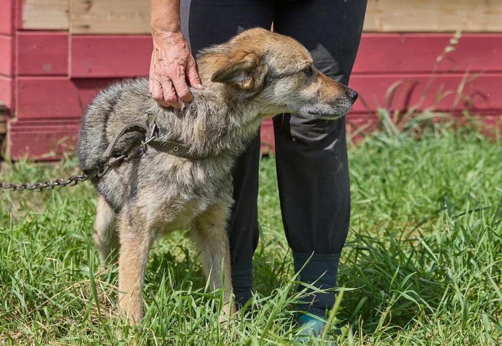 Dort muss er leider an der Kette gehalten werden, da er es immer wieder schafft, aus den Zwingern zu entkommen.