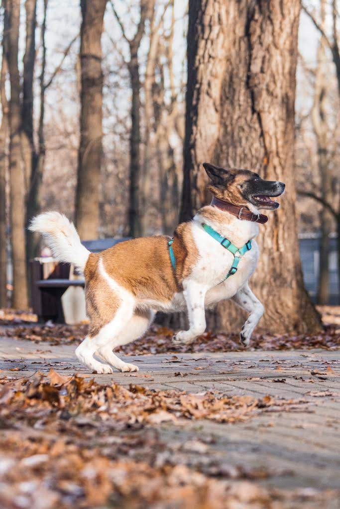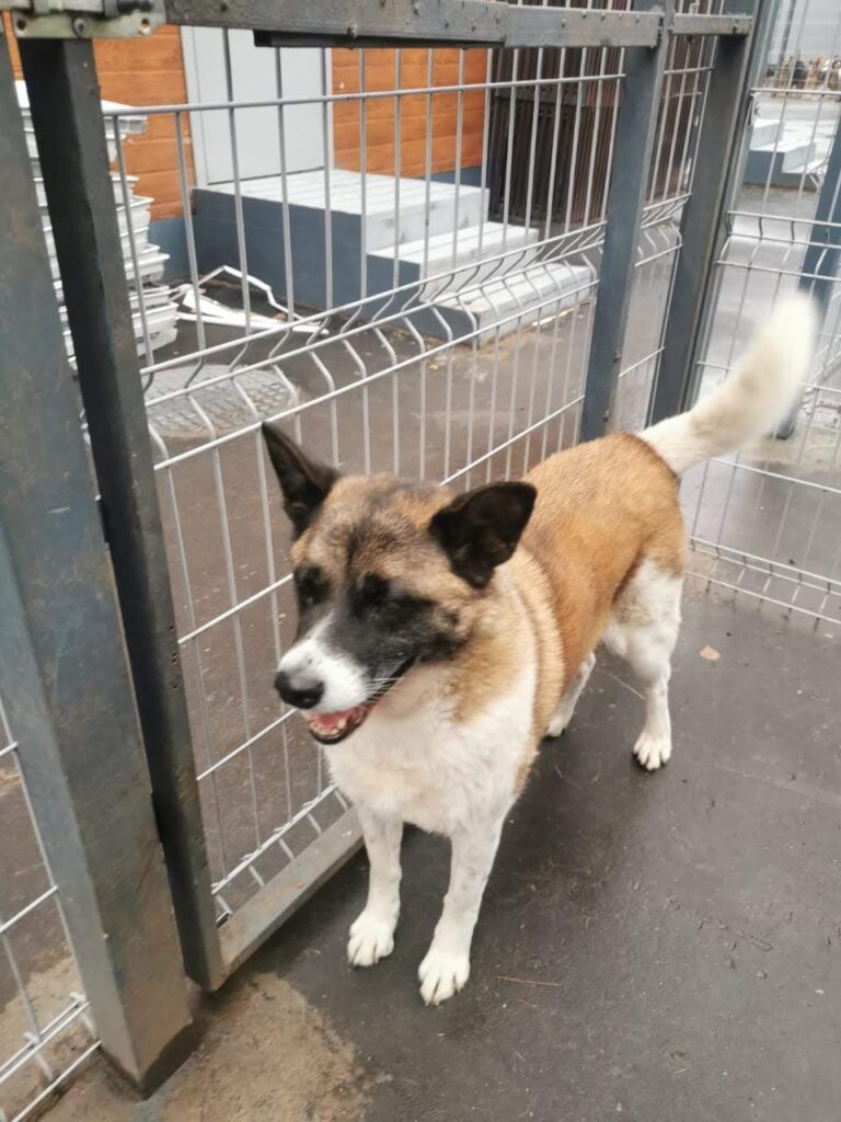 Roshel wurde im Sommer 2023 verletzt am Straßenrand in Russland gefunden. Glücklicherweise stellte sich heraus, dass sie keine Schäden davongetragen hat. Vermutlich lebte sie zuvor als Haushund.